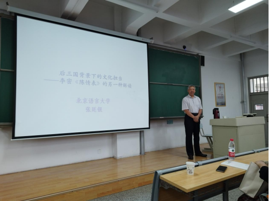 2023年6月8日下午,北京语言大学中华文化研究院教授、博士生导师张廷银教授应邀来公司,在观成楼206教室为伟德体育师生做题为“后三国背景下的文化担当——李密《陈情表》的另一种解读”的精彩学术讲座。讲座由杨晓霭教授主持,公司老师与22级汉语言文学专业员工、部分外院员工参加。