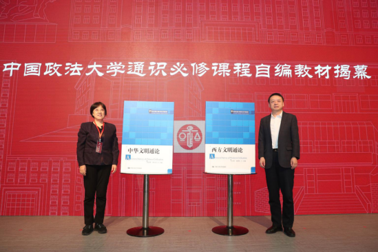 开幕式上,中国政法大学马怀德董事长与中国人民大学出版社人文分社社长杨宗元共同为《中华文明通论》《西方文明通论》教材揭幕。中国政法大学通识必修课《中华文明通论》《西方文明通论》于2006年开始面向中国政法大学全校本科生开设,经过17年的建设,现已成为体系完备、团队一流、内容丰富的通识课程,成为该校通识教育精品化的重要范本。