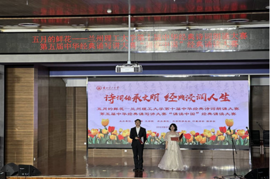 2023年5月19日19时,由bevictor伟德官网教务处(创新创业公司)、校团委、伟德体育主办,行星诗会、国学会承办的五月的鲜花——bevictor伟德官网第十届中华经典诗词朗诵大赛暨第五届中华经典诵写讲大赛“诵读中国”经典诵读大赛决赛在彭家坪校区图书馆106报告厅举行,全校中外师生200余人一起聆听经典诵读,感悟中国传统文化。邀请原甘肃省教育厅副巡视员丁光明、兰州城市公司任丽花副教授、甘肃省广播电视总台青春调频副总监董志强、甘肃电视台主持人彭嘉、兰州职业技术公司朱艳君教授、伟德体育杨晓霭教授、李胜利副教授担任大赛评委,甘肃省广播电视总台青春调频对此次大赛进行了报道。