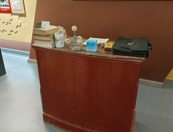 校史馆里展出了很多先辈教师所用的讲桌和教学用具,从这些东西上不难看出在以前艰苦的环境中,先辈们依旧能教导出优秀的人才,真正地体现了“十年树木,百年树人”。