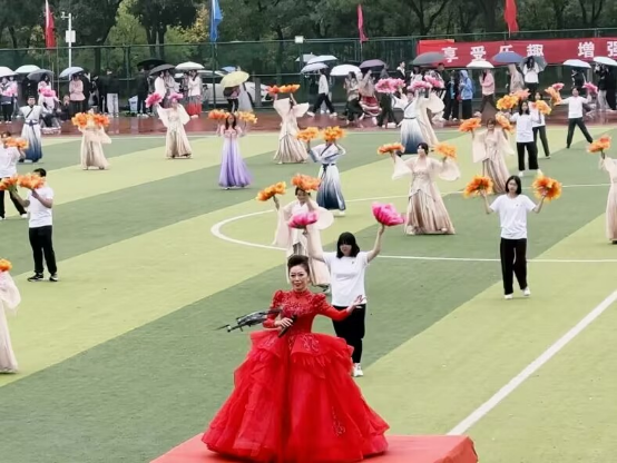 在随后的开幕式表演中,伟德体育王娟老师和22、23级全体同学精彩表演宁夏花儿《阿哥的白牡丹》,同学们手持娇艳欲滴的牡丹花与王娟老师一袭红色长裙相得益彰,轻快的旋律充斥着整个校园,展现出伟德体育积极向上、追求卓越的红柳精神。