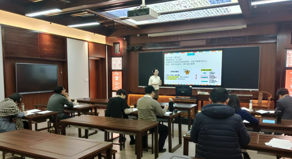 本次活动设置说课、试讲环节,主讲教师在活动中展示教学大纲、教案、讲稿、PPT、讲稿、教学日志等材料。马玉珍老师主讲《中国文化概论》,同时对所开新课《文学经典与心理建设》进行说明与试讲。教学督导组专家认为,该课程教学设计合理,给予了一致好评,同时给出了有益的建议。