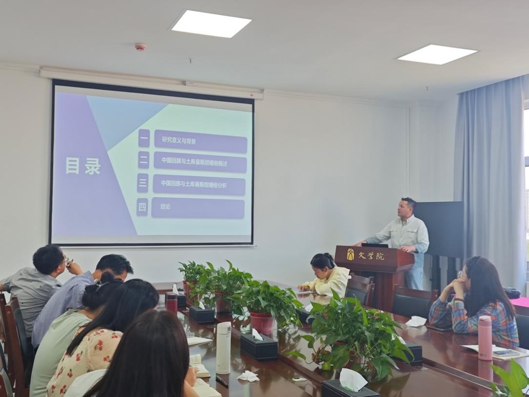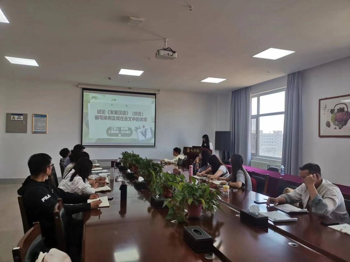 论坛由四位来自汉语国际教育专业的研究生分别做学术报告。潘家新围绕《中华思想文化术语:中华文明的重要精神标识》主题,讨论中华思想文化术语在国际中文教学中的应用。付颖讨论教材《发展汉语•初级口语Ⅰ》声韵调教学的教学路径和教学策略。杨卓雅围绕《发展汉语》(综合),从编写体例和选文体现两部分,分析总结该教材编写特点。来自土库曼斯坦的国际员工柯林顿(krime)从国际员工的视野,分析中国回族与土库曼斯坦婚礼的异同,分析其形成原由。