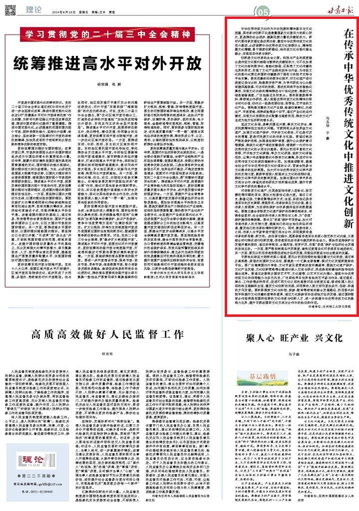 坚定文化自信,是事关国运兴衰、事关文化安全、事关民族精神独立性的大问题。甘肃拥有众多世界级文化遗产,加强文化遗产保护,守护好文化根脉,不仅是对历史的尊重,更是对民族文化的传承与弘扬。要通过制定严格的保护法规、加强遗址维护修复、提升公众保护意识等措施,确保文化遗产得到妥善保存,增强新一代对中华优秀传统文化的认同与归属感。要充分利用丰富的文化资源,开设地方文化课程、举办文化讲座、组织文化体验活动,让青少年在潜移默化中接受文化熏陶,形成对中华优秀传统文化的深刻理解和认同。加强继续教育,提高全社会对中华优秀传统文化价值的认识,营造全民参与文化建设的良好氛围。加大对中华优秀传统文化学术研究的支持力度,鼓励学者深入挖掘本土文化的独特价值,推动文化学术研究的繁荣发展。加强与国内外学术界的交流与合作,借鉴先进的研究方法和理论成果,提升甘肃文化学术研究的整体水平。
