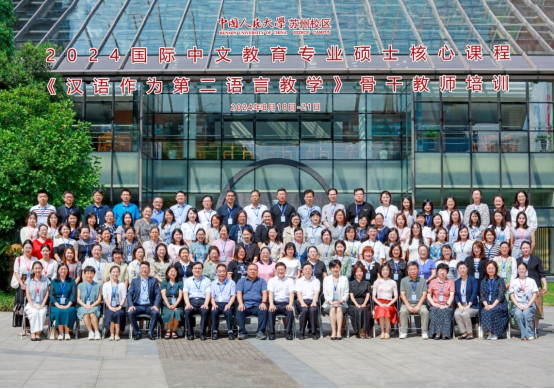 为深入贯彻落实党的二十大和二十届三中全会关于统筹推进教育科技人才一体改革的战略部署要求,加强国际中文教育实践创新型人才培养能力建设,进一步推动国际中文教育高层次专业人才培养模式改革创新发展,由全国国际中文教育专业学位研究生教育指导委员会(教指委)秘书处主办,中国人民大学国际文化交流公司承办的《汉语作为第二语言教学》核心课程骨干教师培训于2024年8月18日-21日在中国人民大学苏州校区举办。教育部中外语言交流合作中心副主任胡志平、教指委副主任委员刘利教授出席开班仪式并致辞。本次培训围绕学科理论与人才培养、文明互鉴与教学实践、教学动态与教学标准、文化体验与教学创新、国际传播与课程思政五个模块展开,邀请教指委副主任委员刘利教授、北京师范大学宋继华教授、中国人民大学臧峰宇教授等相关领域知名专家授课指导。来自全国67所国际中文教育专硕培养院校的84名骨干教师参训。