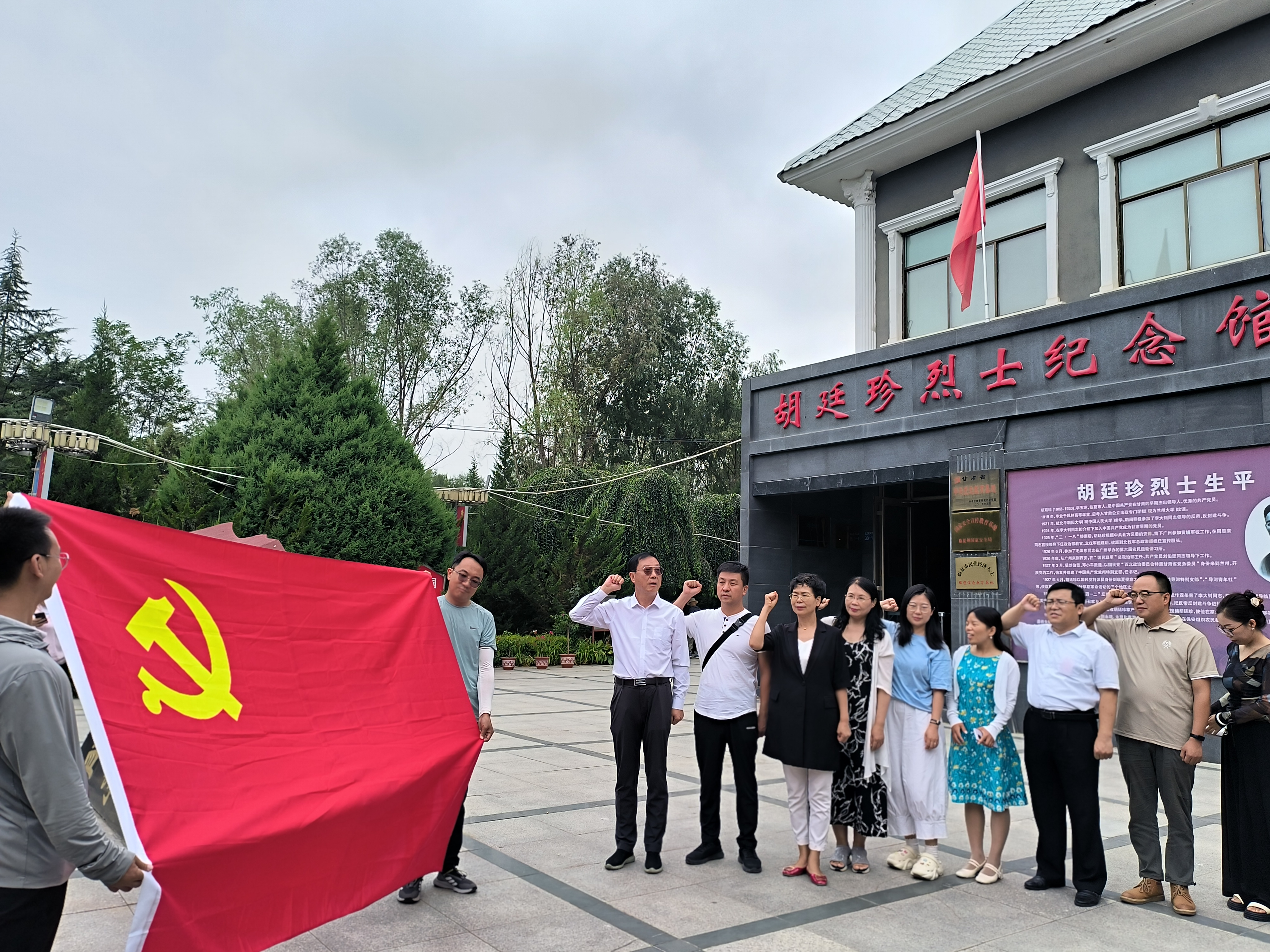 大家在讲解员的带领下进入纪念馆,展馆从少年廷珍、法政学潮、坚信马列、声讨列强、投身北伐、陇原播火、重振旗鼓、艰苦兵运、血铸丰碑、今朝临夏等十个部分介绍了胡廷珍烈士感人事迹,大家依序瞻仰了烈士蜡像、照片,遗物,各位党员满怀崇敬之情详细聆听了先烈的英雄事迹。一张张栩栩如生的图片,一件件感人至深的故事,一幕幕惊心动魄的战斗场景,让广大党员驻足凝视、细细品读,大家被胡延珍烈士的坚定信仰和为党捐躯的大无畏革命精神所吸引、所震撼。随后,参加活动的党员面对党旗,重温入党誓词,进行庄严宣誓,表达了对党的无限忠诚。