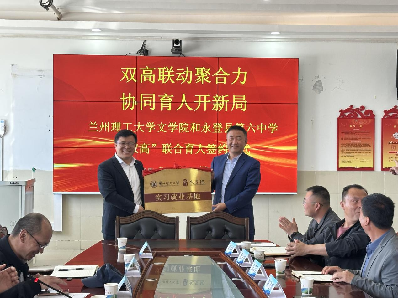 钱得运介绍了公司近年来的发展,以及专业建设和员工就业情况。并表示高校具有服务社会的特性,通过科普讲座、推普工作、研学活动等方式打造“立品修身”育人模式,同时也希望从毕业生实习、就业、教育创新人才培养等方面深化合作,实现共赢。签约仪式上,钱得运与永登县第六中学负责人分别代表双方单位签订共建协议书,并举行“实习就业基地”授牌仪式。